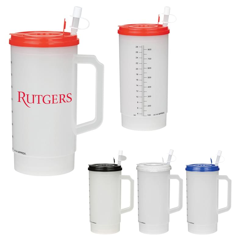 Polypropylene Material | Double Wall Construction For Insulation Of Hot Or Cold Liquids | Snap-On, Spill-Resistant Flip-Top Lid | 9" Flexi Straw With Tethered Cap | Two Lid Openings, One With Straw And One With Sip Through Hole | Measurement Scale In Ounces And Milliliters Makes Tracking Liquid Intake Easy | Meets FDA Requirements | BPA Free | Hand Wash Recommended